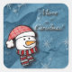 Sticker Carré Joyeux Noël, bonhomme de neige avec des vêtements