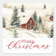 Sticker Carré Joyeux Noël Cabane Rustique de la Forêt de Fêtes