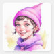 Un elfe féminin mignon et violet de style rétro vintage. Des autocollants adorables pour sceller vos cartes de Noël ou vos sacs de cadeaux avec.