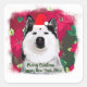 Joyeux Noël, Joyeux Nouvel An drôle tee avec chien husky et arrière - plan de fleurs rouges. Facile à customiser, personnaliser votre texte.