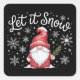Sticker Carré Joyeux Noël mignonne Gnome Laissez-le neiger hiver