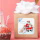 Sticker Carré Joyeux Noël - Père Noël avec chat et chien