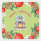 Sticker Carré Joyeux Noël Rouge Vert cheminée Wreath