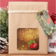 Unique, classique, tendance, joli et décoratif sticker Holiday. Mignonne 'Joyeux Noël' citation texte écrit en typographie sur un motif de planches à faux bois. Avec des baubles ronds et en forme d'étoile rouge et des feuilles de pin vert.