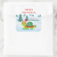 Sticker Carré Joyeux Noël Turtle Patinage sur glace en hiver