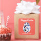 Ces autocollants personnalisés affichent le message de bienvenue "Pâques heureuse" en typographie en écriture blanche, au-dessus d'une photo d'un oeuf de Pâques à motifs sur un arrière - plan rouge. Personnalisez avec votre ou vos nom(s) en majuscules sous l'image de l'oeuf. Les autocollants confèrent une élégante addition saisonnière aux sacs de fête, aux cartes et aux enveloppes, aux sacs de collection d'oeufs et aux cadeaux de Pâques emballés.