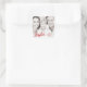 Christmas photo sticker featuring your custom family photo and red text “Joyful” in a festive, retro style font with customizable name and year to the right.