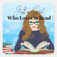Mignonne fille nerveuse dans les lunettes de l'aquarelle abstraite lire un livre à son bureau. Citation, "Juste une fille qui aime lire."