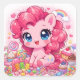 Sticker Carré Kawaii Pink Pony Chibi Art – Sweet Candy & Cupcake