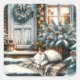 Sticker Carré Kitten Dors sur Festive Porche avant Noël