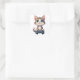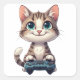 Sticker Carré Kitten Holding Game Controller Smiling Gamer Cat