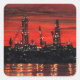 Dans cette aquarelle industrielle, le ciel est inondé de rouge après un coucher de soleil brillant à Portland, dans le Maine. Les derricks d'huile en construction créent des silhouettes dures contre les brillants rouges et oranges. Des pointes de lumière, réfléchissant dans l'eau de l'océan pendant que les travaux se poursuivent dans la nuit.