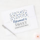 La retraite est une étiquette de faveur douce autocollante avec motif confetti bleu et argent.