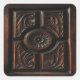 Cet autocollant est décoré d'une image d'un beau bois artistique sculpté dans les tons brun, or, acajou et noir. Une image centrale abstraite de fleurs circulaires a des pétales rayonnant sur un cercle sculpté qui est entouré de quatre sections. Chaque section a des sculptures abstraites de feuilles.