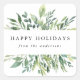 Nos élégants stickers de vacances Winter Greenery comprennent le salut "Happy Holidays" et votre nom encadré par un feuillage vert aquarelle.