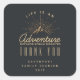 sticker Merci avec une illustration de couleur or sur un arrière - plan gris-noir. Conçu avec une illustration d'une montagne avec les rayons de soleil brillant vers l'extérieur de derrière. La typographie dit : La vie est une aventure explorer la découverte de rêve.
