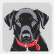 Portrait artistique vif d'un chien du Labrador noir aux yeux expressifs portant un collier rouge, soulignant son expression sereine et son apparence frappante sur un arrière - plan neutre.