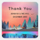 stickers Merci avec un design graphique magnifique avec un lac paisible avec des cerfs. et de grands pins se reflétant dans l'eau. Les étoiles planent au-dessus.