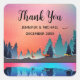 stickers Merci avec un design graphique magnifique avec un lac paisible avec des cerfs. et de grands pins se reflétant dans l'eau. Les étoiles planent au-dessus.