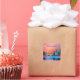 stickers Merci avec un design graphique magnifique avec un lac paisible avec des cerfs. et de grands pins se reflétant dans l'eau. Les étoiles planent au-dessus.