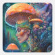 Sticker Carré Lady Et Champignons Surreal Imaginaire Art