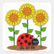 Cette coccinelle rouge fantaisie se dresse devant un groupe de tournesols jaunes et oranges.