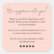 Laissez-nous un commentaire Merci Blush Pink Boost fiançailles client avec un autocollant carré simple mais impactful. Comprend un "Merci" sincère et un script "Leave a Review" clair pour encourager une rétroaction positive.