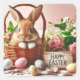 mignon lapin brun dans un panier de pâques entouré de fleurs et d'oeufs de pâques Créez des autocollants personnalisés pour chaque occasion! Pour décorer vos courriers, les travaux pratiques de vos enfants et bien plus encore. Ajoutez vos propres designs, textes et photos !