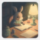 Sticker Carré Lapin écrivant à un bureau -