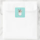Sticker Carré Lapin intelligent avec Fleur et Coeur sur Bleu cla