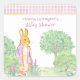 Sweet Piink Rabbit dans le jardin avec la verdure et les fleurs faites dans l'eau douce. Un cadre rose & blanc aux accents verts. Personnalisez avec votre choix de nom en coordonnant la couleur rose. Parfait pour les baby showers filles. baby shower à thème "Un lapin doux". Utiliser pour le sceau d'enveloppe de baby shower, la décoration ou la fermeture de sac.