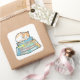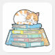 Sticker Carré Lazy Cat on Books – Cute Cozy Illustration