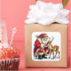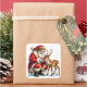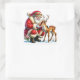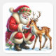 Sticker Carré Le Père Noël interagit avec un renne doux