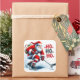 Le Père Noël patine joyeusement sur une patinoire, vêtu de son costume rouge classique. Avec un sac posé sur son épaule, il se prépare à tirer une rondelle, incarnant l'esprit festif. Le cadre enneigé ajoute à l'atmosphère hivernale joyeuse.