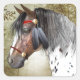 OEuvre d'art numérique originale de Jayne Wilson avec le portrait d'un Appaloosa Indian Pony dans une brique rouge, aux accents dorés et aux plumes.