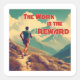 En tant que coureur, vous savez que les résultats de course ou les PR ne sont pas la récompense. La récompense est dans la formation, le travail. Ce design est dans le style d'une affiche de voyage rétro vintage.