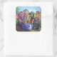 Art de la lecture estivale de Traci Van Wagoner présente un garçon et une fille assis dans un jardin urbain, les pieds dans un bain cool, en train de boire de la limonade et de lire des livres. Un chat et un chien s'allongent à leurs pieds sur le pont de bois. Parfait pour les amateurs de livres et de bibliophiles de tous âges.