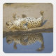 Sticker Carré Léopard (Panthera pardus) femelle roulant sur