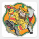 Souriant Leprechaun Irlandais pompier avec tuyau d'incendie et hache de feu! Arrière - plan de pompier de couleur irlandaise. Soutenez votre pompier local et aimez votre héros irlandais!