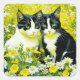 Sticker Carré Les chats adorables assis dans un champ de marguer