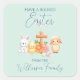 Ce mignon autocollant de Pâques présente un thème religieux chrétien dans un aquarelle pastel. Une croix en bois est photographiée au centre. Les bébés animaux, dont un agneau, un poussin et un lapin, sont représentés autour de la croix. Fleurs de printemps et oeufs de Pâques accentuent l'image.