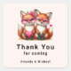 stickers Merci avec une adorable image de 2 renards portant de mignons verres de coeur teintés rose. Décoré avec des accents de coeur.
