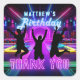 Trampoline park birthday thank you stickers for kids are the perfect finishing touch for party favors and gift bags at an action-packed celebration. This custom sticker design features vibrant digital artwork of a colorful trampoline arena, playful silhouettes of kids jumping mid-air, and neon-style “Thank You” text. While the colors mimic a neon glow, the design is printed with standard ink for a bold and energetic look. These stickers are ideal for trampoline-themed birthday parties, bounce house events, or glow-style celebrations, bringing fun and movement to every detail. Use them to seal favor bags, decorate treat boxes, or add flair to thank-you cards. With its lively colors and custom name personalization, this sticker ties perfectly into jump-themed party décor and helps guests leave with a smile.