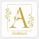 Joli sceau / autocollant avec cadre botanique dessiné à la main en or avec la lettre A botanique au centre. Personnalisez avec le nom