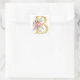 Sticker Carré Lettre B dorée avec fleurs