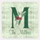 Joli et festif design de vacances avec majuscules M avec remplissage de marmite vert et agrémenté d'une fleurs d'hiver et bouquet d'aquarelle feuillage sur arrière - plan motif arlequin vert défoncé muet. Personnaliser avec le nom ou un autre message