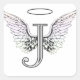 Sticker Carré Lettre J Monogramme initial avec ailes angéliques