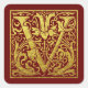 Sticker Carré Lettre V Première Lettre Faux Or Rouge
