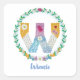 Sticker Carré Lettres de fleurs Initiale "W" avec nom personnali