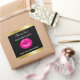 Merci à la fête autocollants avec un dessin d'une paire de lèvres rose brillant sur un arrière - plan noir.